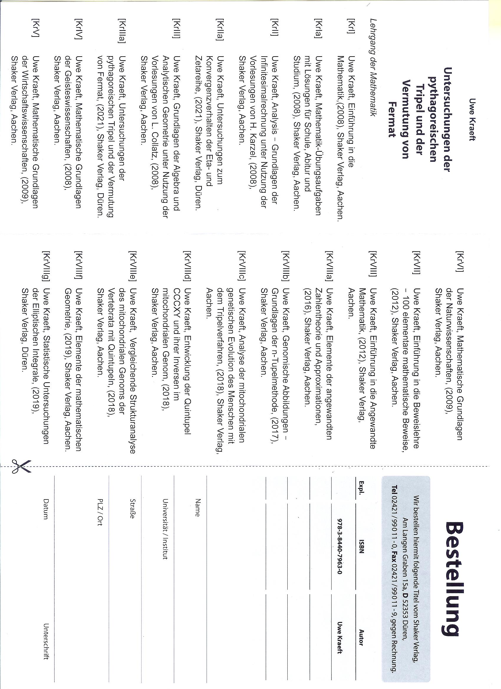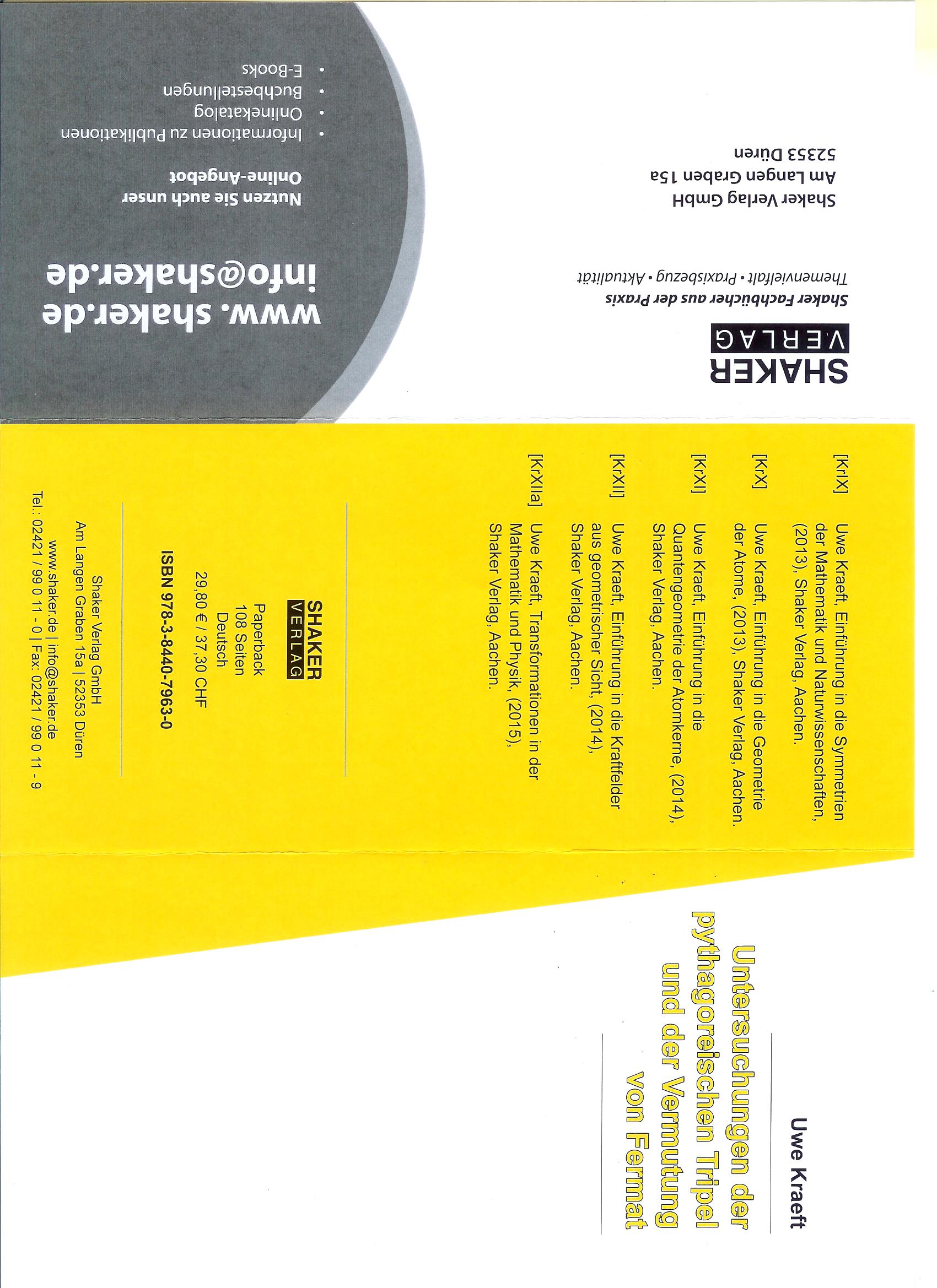 Uwe Kraeft, Die Fermat Vermutung, (2023), Shaker Verlag, Düren.
